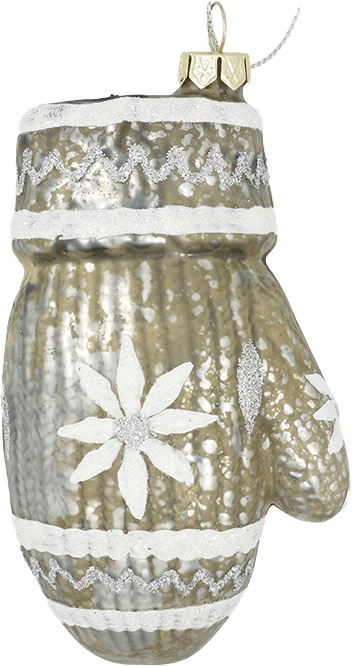Süßer Weihnachtshandschuh mit Schneeflocken in grau als Weihnachtskugel zum Aufhängen.